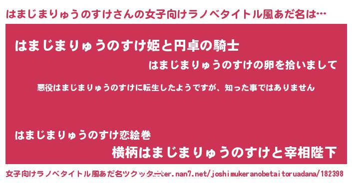 | 男性向けラノベタイトル風あだ名 | 『この素晴らしい世界にはまじまりゅうのすけを!』 |