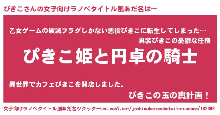 | 胡散臭い通販商品みたいなあだ名 | 『モテモテ間違いなし水晶球…その名も「ぴきこ」』 |