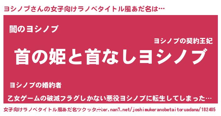 | ヘコむあだ名 | 『ヨシノブ(爆)』『なまこ酢』 |