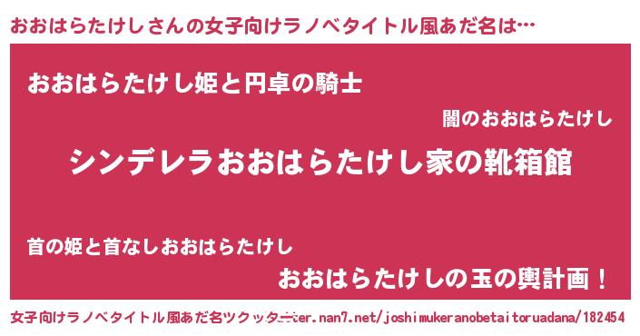 | 男性向けラノベタイトル風あだ名 | 『緋弾のオオハラタケシ』 |