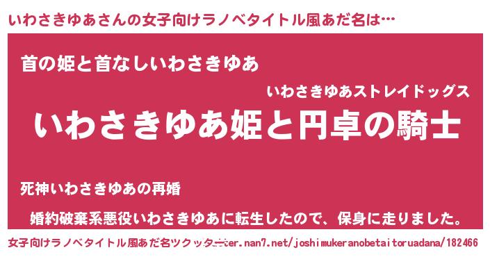 | 男性向けラノベタイトル風あだ名 | 『イワサキユアアートオンライン』 |