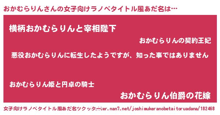 | 男性向けラノベタイトル風あだ名 | 『この素晴らしい世界におかむらりんを!』 |