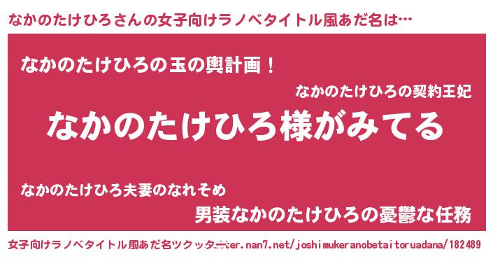 | 男性向けラノベタイトル風あだ名 | 『なかのたけひろの嫁は女の子じゃないと思った?』 |