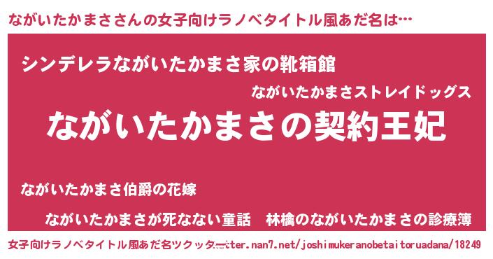 | 男性向けラノベタイトル風あだ名 | 『誰もが恐れるあのながいたかまさが、ぼくの専属メイドになるようです。』 |