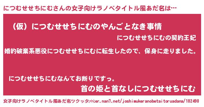 | 男性向けラノベタイトル風あだ名 | 『ニツムセセチニムスレイヤー』 |
