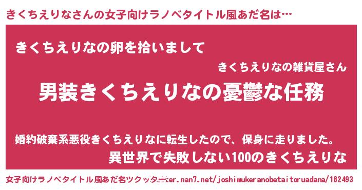 | 男性向けラノベタイトル風あだ名 | 『うちのきくちえりなが世界を掌握している!』 |