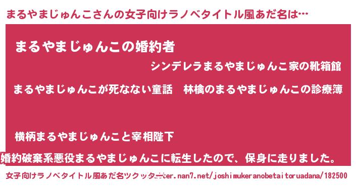 | 男性向けラノベタイトル風あだ名 | 『魔弾の王とまるやまじゅんこ』 |