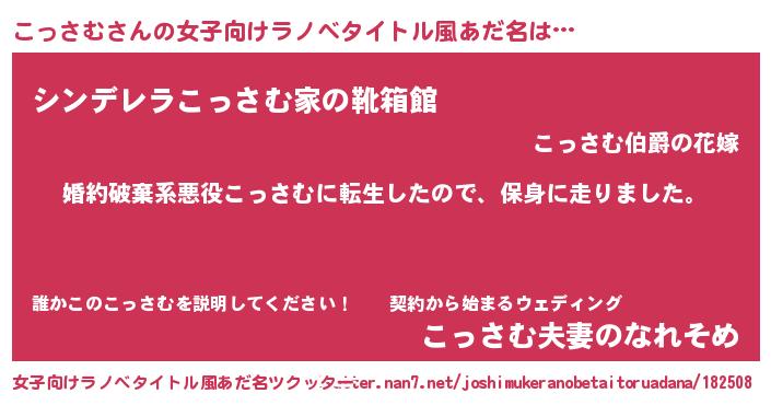 | 男性向けラノベタイトル風あだ名 | 『コッサムスレイヤー』『緋弾のコッサム』 |