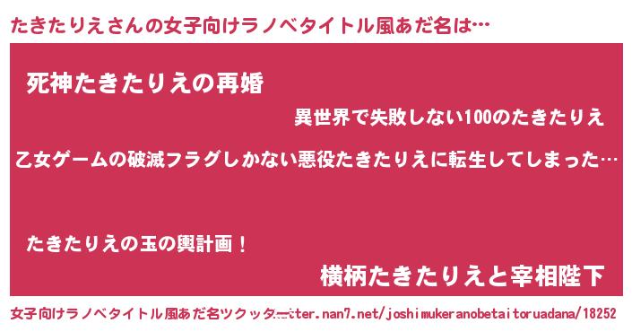 | ヒーロー風カッコイイあだ名 | 『仮面タキダー』『天空の使者たきたりえ』 |