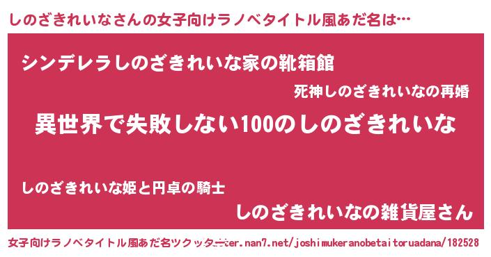 | 男性向けラノベタイトル風あだ名 | 『しのざきれいなという概念が存在しない退屈な世界 』 |
