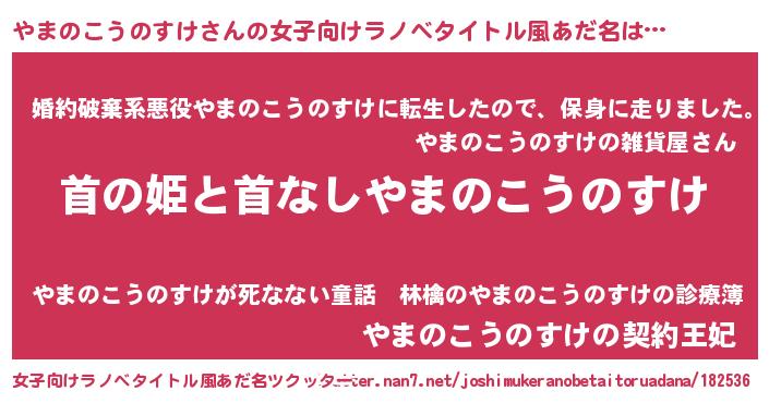 | 胡散臭い通販商品みたいなあだ名 | 『絶対に幸福をもたらす水素水…その名も「やまのこうのすけ」』 |