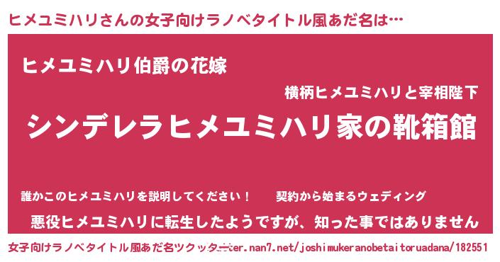| ヒーロー風カッコイイあだ名 | 『ウルトラヒメユミハリマン』 |