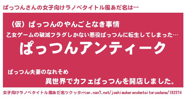 | 意味不明あだ名 | 『自称ぱっつん』『ペロリンぱっつん』 |
