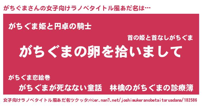 | 男性向けラノベタイトル風あだ名 | 『がちぐまの嫁は女の子じゃないと思った?』 |