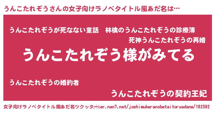男性向けラノベタイトル風あだ名 | 『うんこたれぞうの嫁は女の子じゃないと思った?』 |