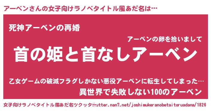 | 男性向けラノベタイトル風あだ名 | 『はたらくアーベンさま!』 |
