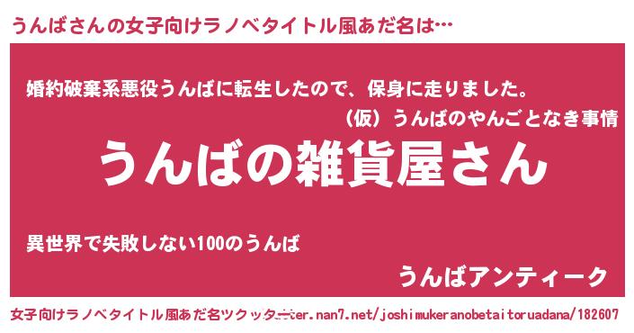 | 男性向けラノベタイトル風あだ名 | 『やはりうんばの青春ラブコメはまちがっている 』 |