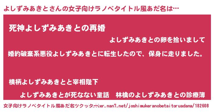 | 男性向けラノベタイトル風あだ名 | 『転生したらよしずみあきとだった件』 |