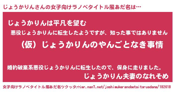 | 男性向けラノベタイトル風あだ名 | 『じょうかりんの憂鬱』 |