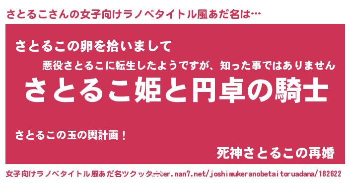| 男性向けラノベタイトル風あだ名 | 『さとるこの憂鬱』 |