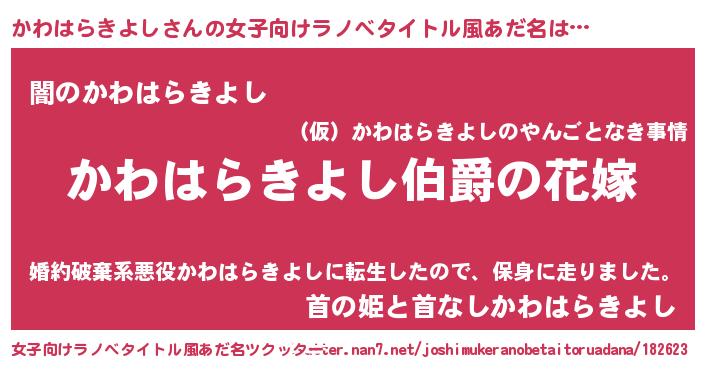 | 男性向けラノベタイトル風あだ名 | 『やはりかわはらきよしの青春ラブコメはまちがっている 』 |