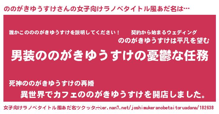 | 男性向けラノベタイトル風あだ名 | 『うちのののがきゆうすけが世界を掌握している!』 |