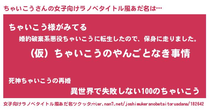 | 胡散臭い通販商品みたいなあだ名 | 『必ず成功する霊験あらたかなお札…その名も「ちゃいこう」』 |