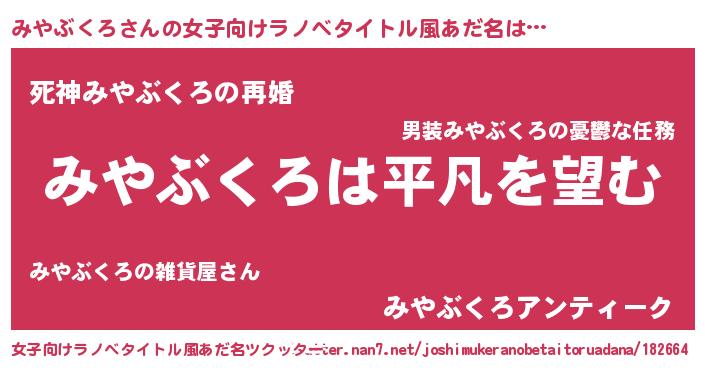 | 意味不明あだ名 | 『とにかく怪しいみやぶくろ』 |