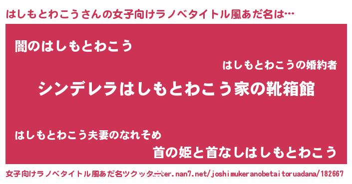 | 意味不明あだ名 | 『自称はしもとわこう』 |