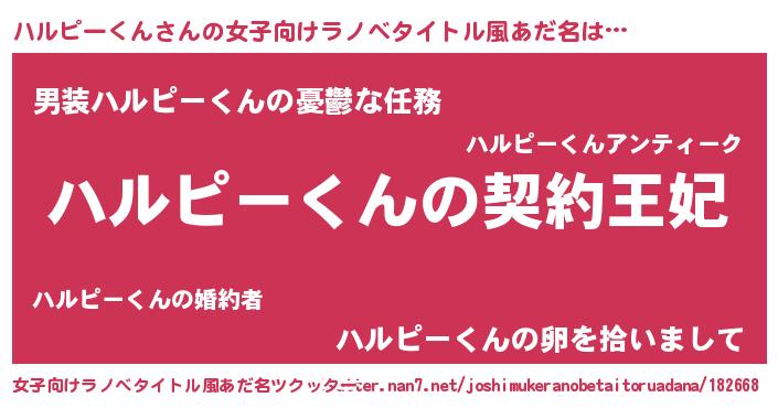 | 男性向けラノベタイトル風あだ名 | 『ハルピーくんという概念が存在しない退屈な世界 』 |