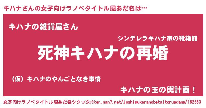 | 男性向けラノベタイトル風あだ名 | 『ノーゲーム・ノーキハナ』 |