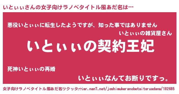 | 男性向けラノベタイトル風あだ名 | 『誰もが恐れるあのいとぃぃが、ぼくの専属メイドになるようです。』 |