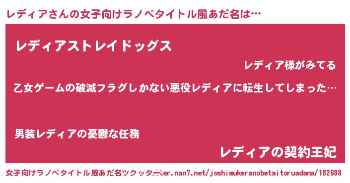 レディアさんの女子向けラノベタイトル風あだ名