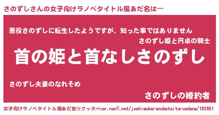 | 意味不明あだ名 | 『住所不定無職さのずし(74歳)』 |