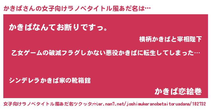 | 男性向けラノベタイトル風あだ名 | 『魔弾の王とかきば』『緋弾のカキバ』 |