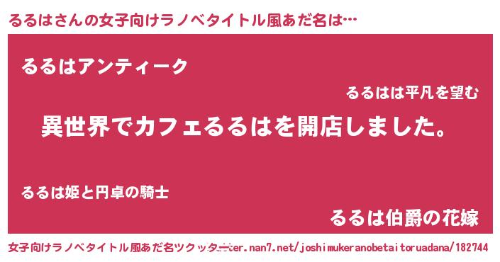| 男性向けラノベタイトル風あだ名 | 『誰もが恐れるあのるるはが、ぼくの専属メイドになるようです。』 |