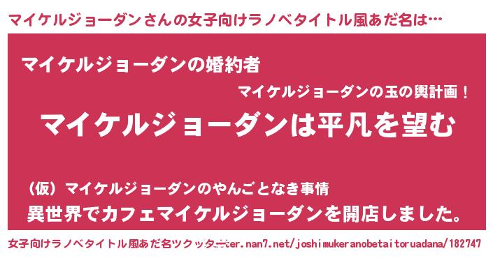 | 男性向けラノベタイトル風あだ名 | 『ダンジョンにマイケルジョーダンを求めるのは間違っているだろうか』 |