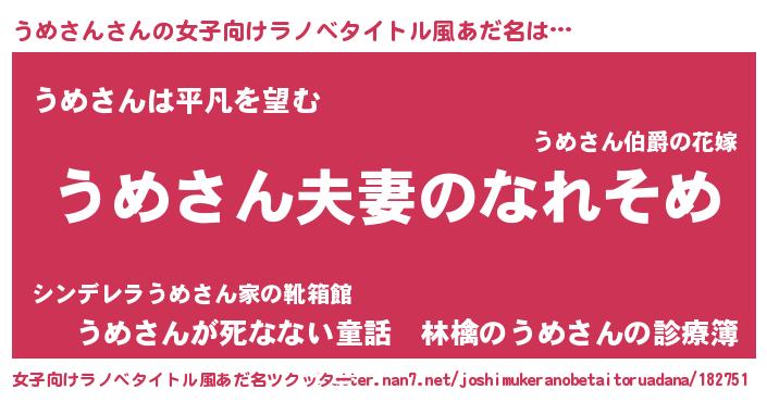 | 意味不明あだ名 | 『眠気覚ましガムうめさん味』 |