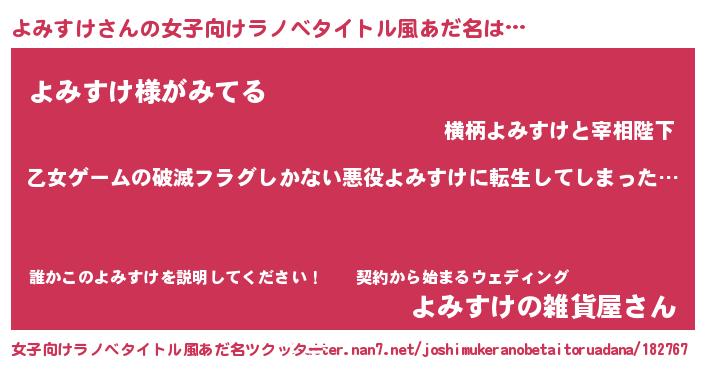 | 男性向けラノベタイトル風あだ名 | 『魔弾の王とよみすけ』 |