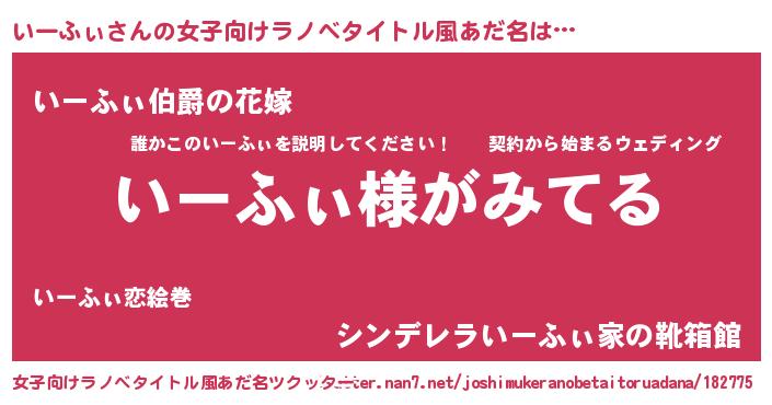| 男性向けラノベタイトル風あだ名 | 『いーふぃの嫁は女の子じゃないと思った?』 |