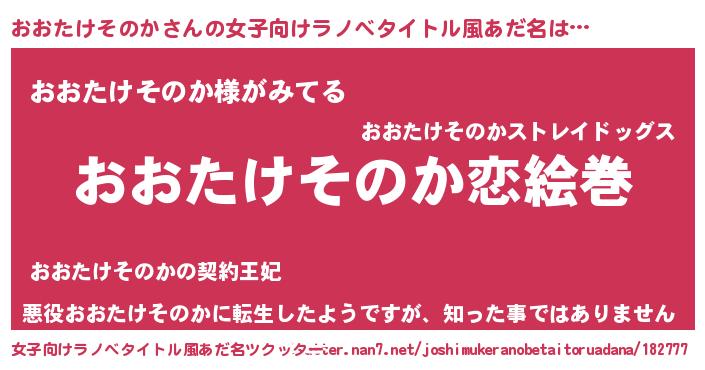 | 男性向けラノベタイトル風あだ名 | 『ノーゲーム・ノーオオタケソノカ』 |