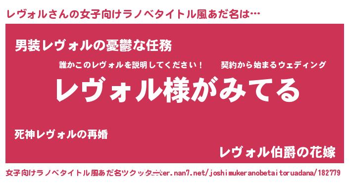 | 恥ずかしいあだ名 | 『レヴリンリン』『レヴっちょ』 |