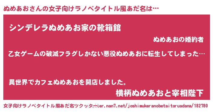 | 意味不明あだ名 | 『住所不定無職ぬめあお(43歳)』 |
