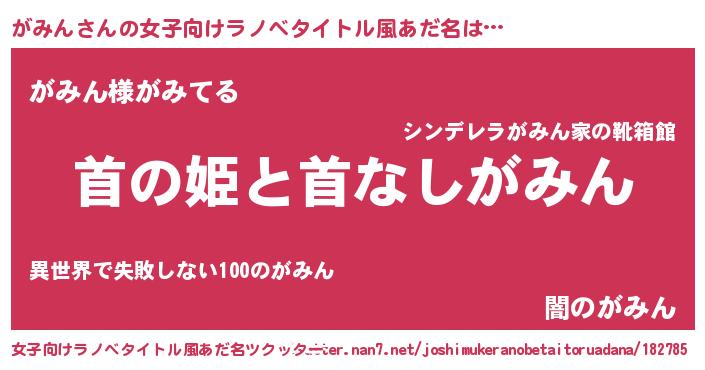 | 意味不明あだ名 | 『とにかく怪しいがみん』『自称がみん』 |