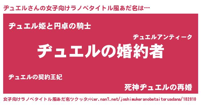 | 胡散臭い通販商品みたいなあだ名 | 『運命の人と巡り会える高級そうな壺…その名も「ヂュエル」』 |