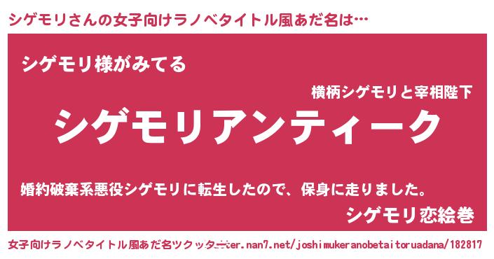 | 意味不明あだ名 | 『自称シゲモリ』『ヨモギ科シゲモリ属』 |