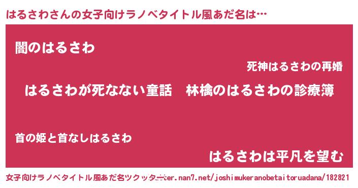 | 男性向けラノベタイトル風あだ名 | 『魔弾の王とはるさわ』 |