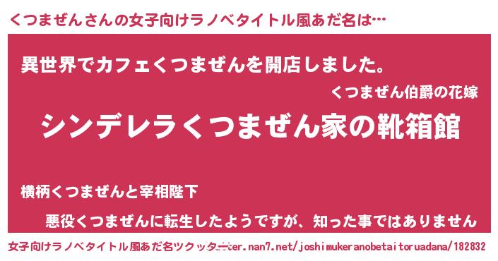 | 胡散臭い通販商品みたいなあだ名 | 『絶対に幸福をもたらす健康食品…その名も「くつまぜん」』 |