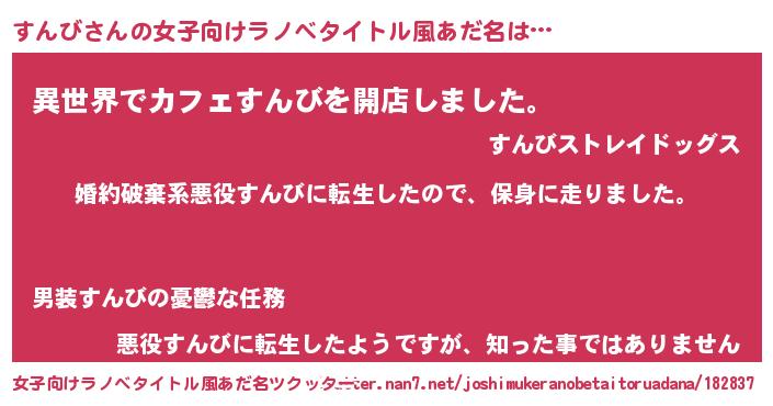 | 男性向けラノベタイトル風あだ名 | 『スンビスレイヤー』 |