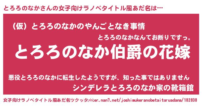 | 男性向けラノベタイトル風あだ名 | 『やはりとろろのなかの青春ラブコメはまちがっている 』 |